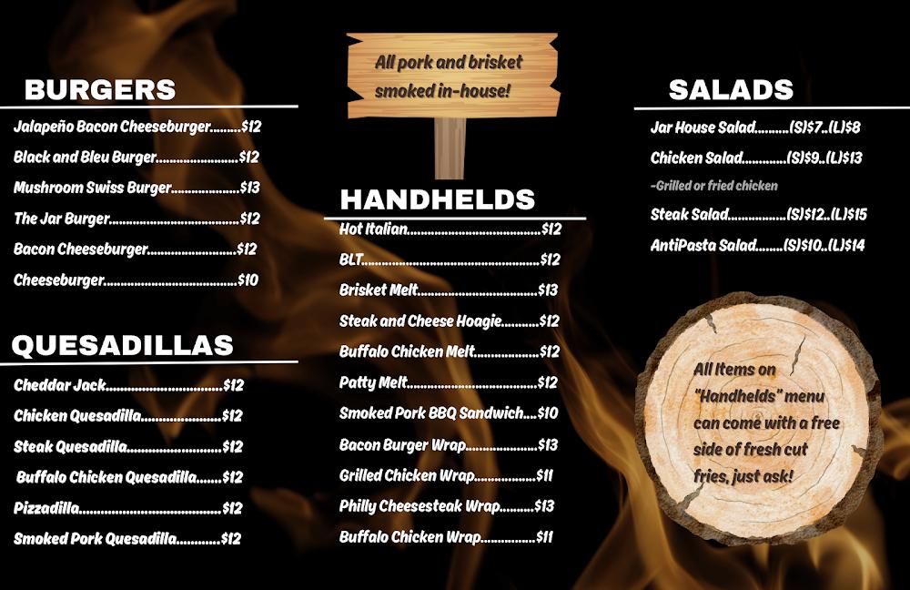The Jar's menu offers a variety of grilled dishes, including burgers, wings, and sandwiches. A standout feature includes customizable flavors for the wings that cater to various taste preferences. Burgers, crafted with fresh ingredients, provide satisfying options.