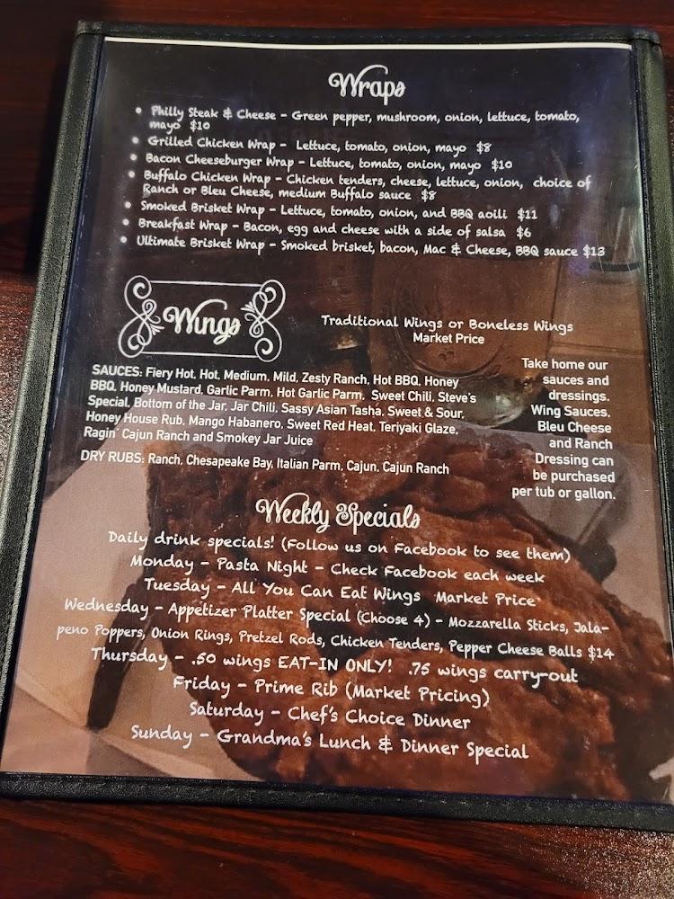 Menu and prices subject to change. Contact +1 304-241-5914 for confirmation.